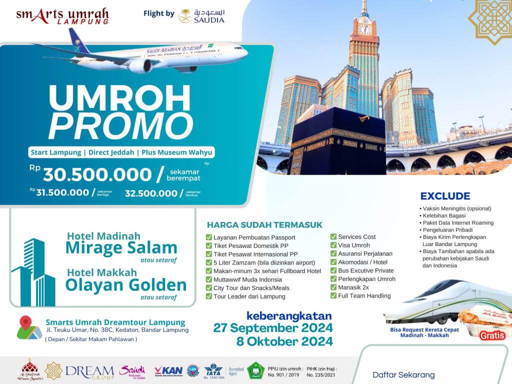 - Pendaftaran disertai dengan Deposit minimum IDR 5.000.000, dengan pelunasan biaya paket maksimal 3 (tiga) minggu sebelum Jadwal Keberangkatan