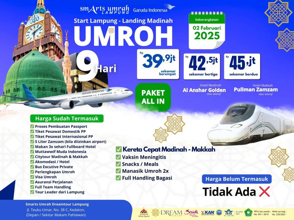 - Pendaftaran disertai dengan Deposit minimum IDR 5.000.000, dengan pelunasan biaya paket maksimal 3 (tiga) minggu sebelum Jadwal Keberangkatan
