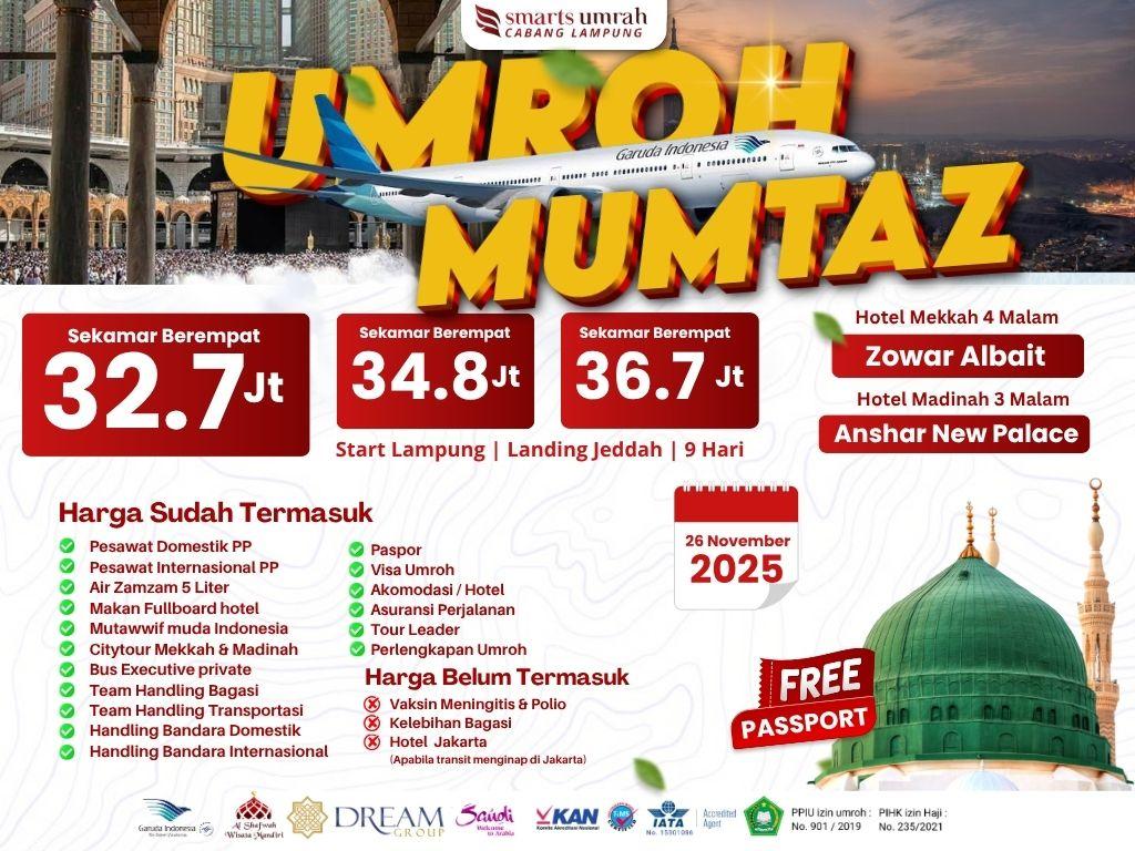 Paket Umrah Mumtaz 9 Hari 26 November 2025