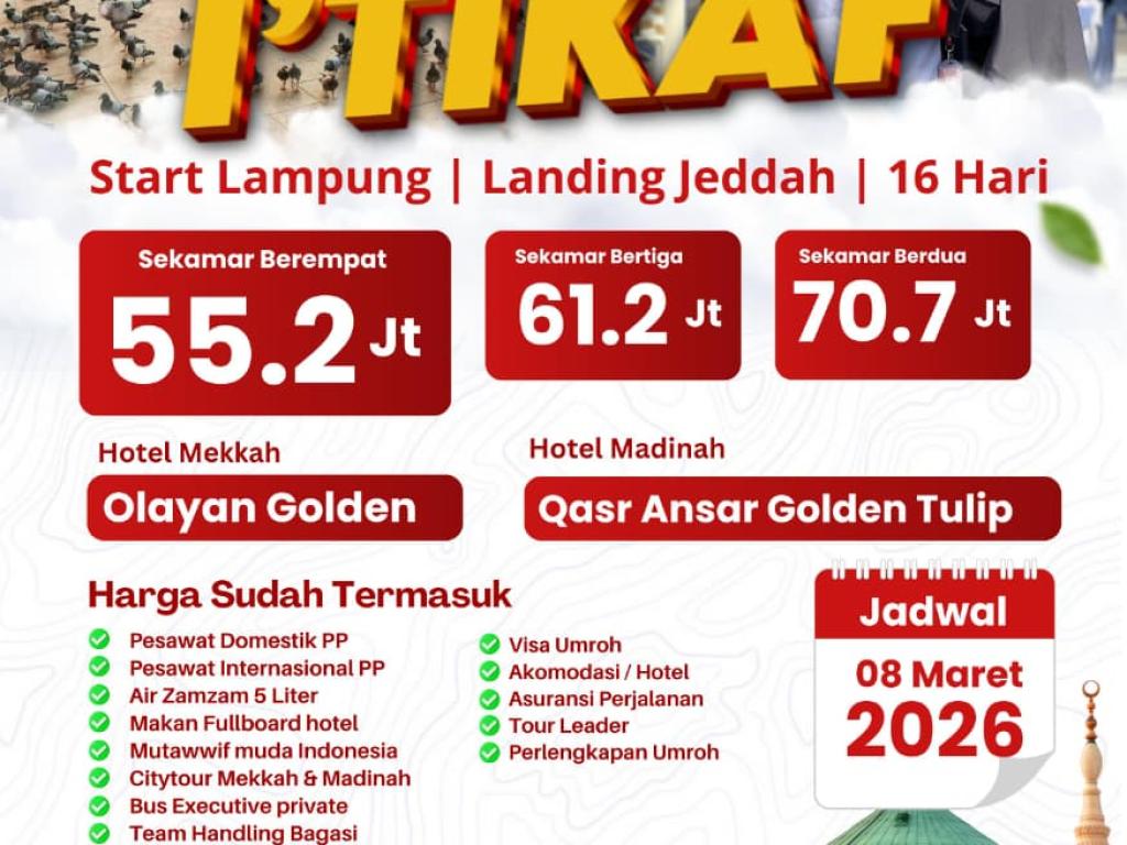 Paket Umroh itikaf 16 Hari Ramadhan 8 Maret 2026